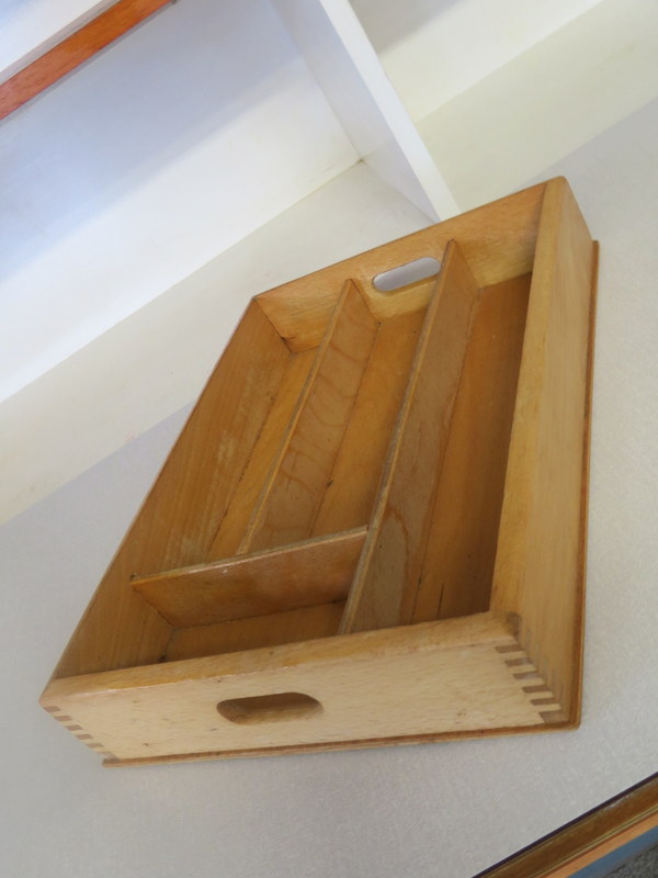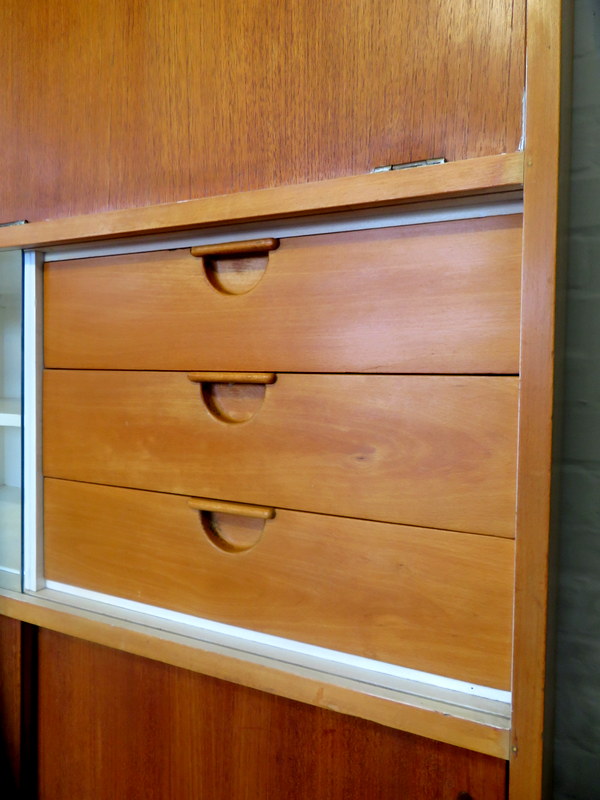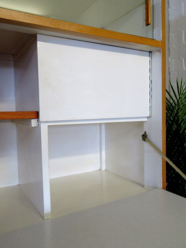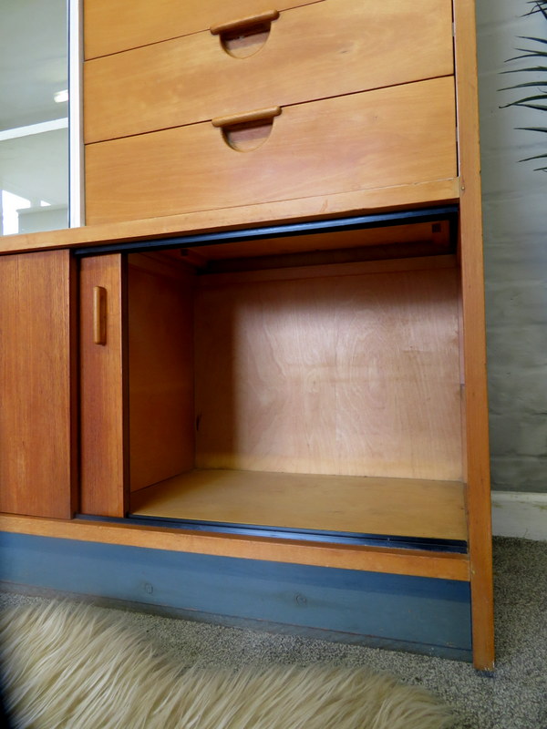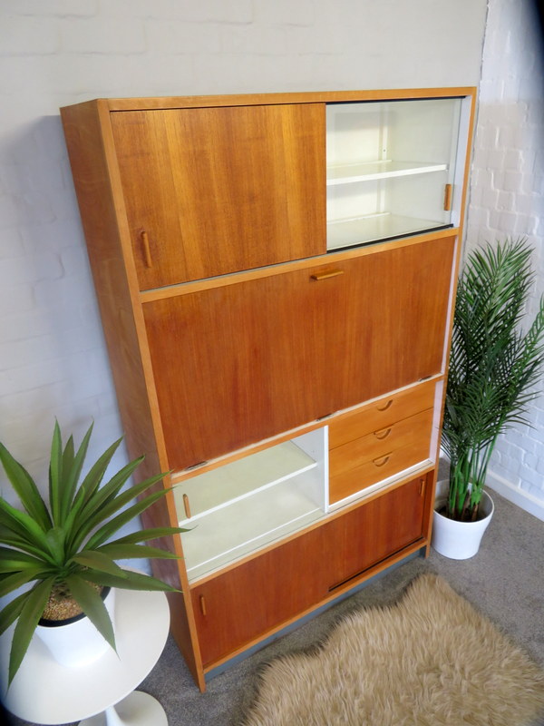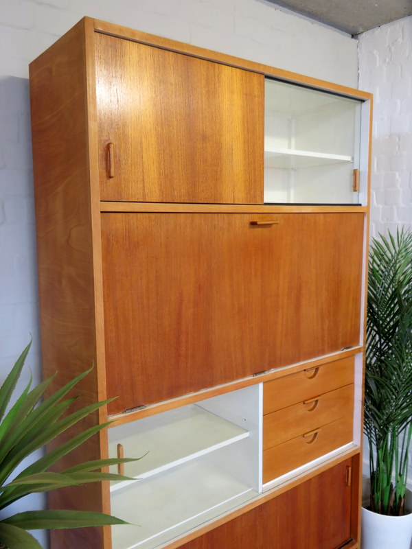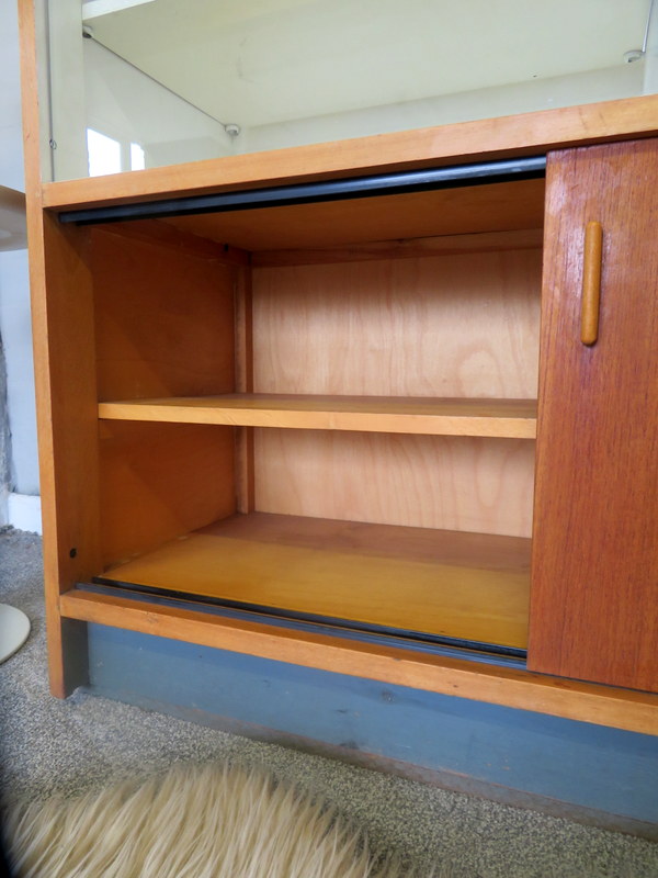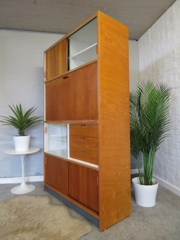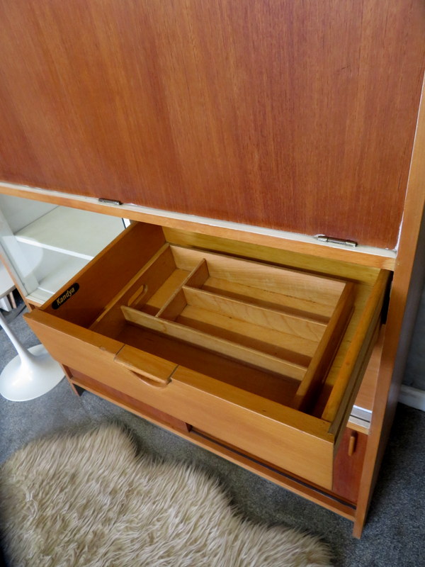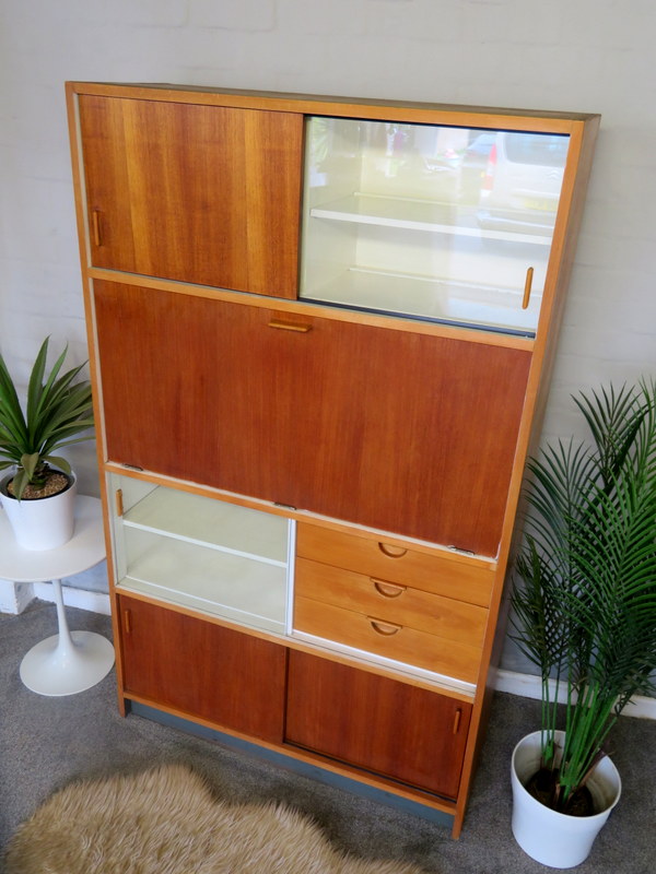 Designed by the highly respected FRANK GUILLE for the TRIMMA range at KANDYA this STUNNING Cabinet would look fantastic in either a Vintage Kitchen OR in a modern Kitchen / Studio environment. Made with gorgeous Birch wood and coming with the original stunning Glass Doors with handles, complete with the cold storage section AND coming with the removable cutlery section and providing plenty of display & storage opportunities this really is a MUST HAVE Cabinet.