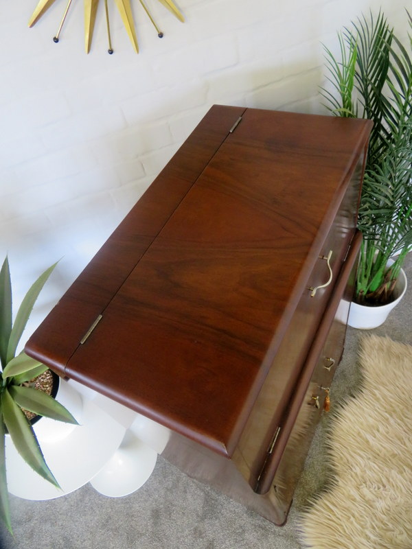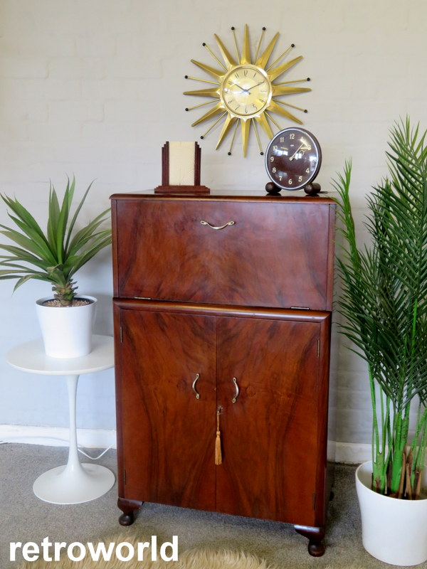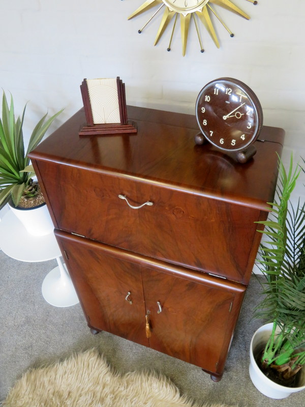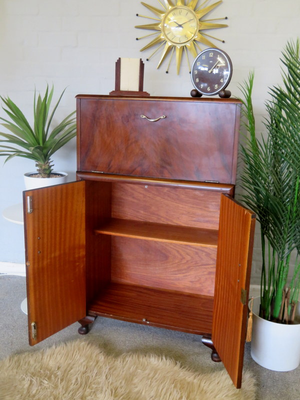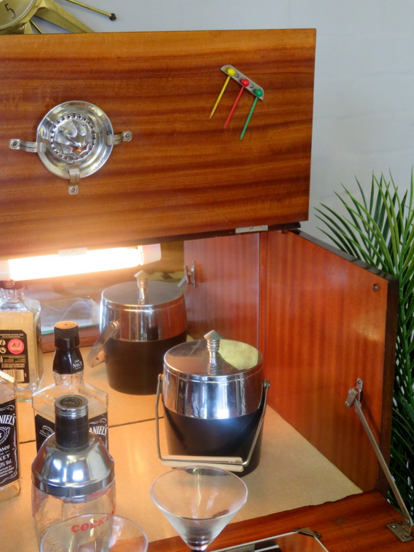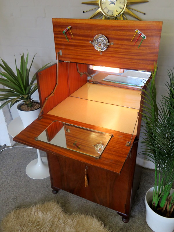 The Cabinet comes in VERY GOOD Vintage condition with just light marks and wear commensurate with age and use. Please see all photos for the best description of the really lovely condition. There are no cracks to the original internal mirrors, some light foxing commensurate with age and use. Any questions at all regarding the condition please feel free to ask and extra photos and info can be supplied. Viewing is also available request. Please note the items shown in the Cabinet are NOT included (the Set of x6 Cocktail Sticks & Lemon Squeezer ARE included).