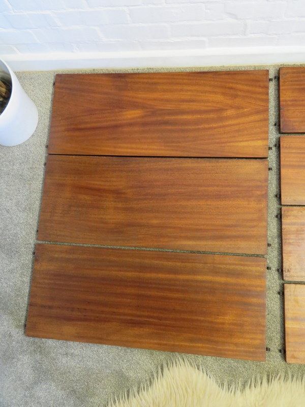 -- x7 Shelves (x3 30.5 cms deep & x4 23 cms deep) complete with all their original metal hooks to hang on the side supports.