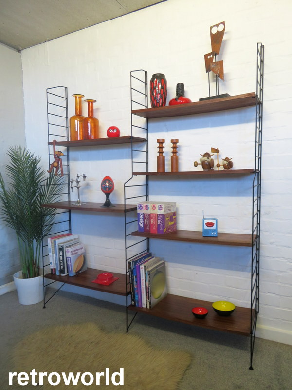 This is a great opportunity to own a Double Bay Set of ICONIC Vintage Shelving. Designed by NILS STRINNING and referred to as STRING this very cool Set of Shelving provides plenty of display opportunities and would look fantastic in a Vintage / Mid Century environment.