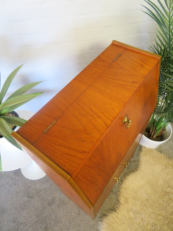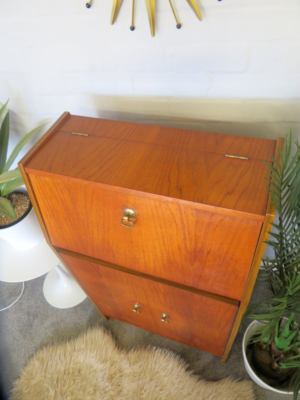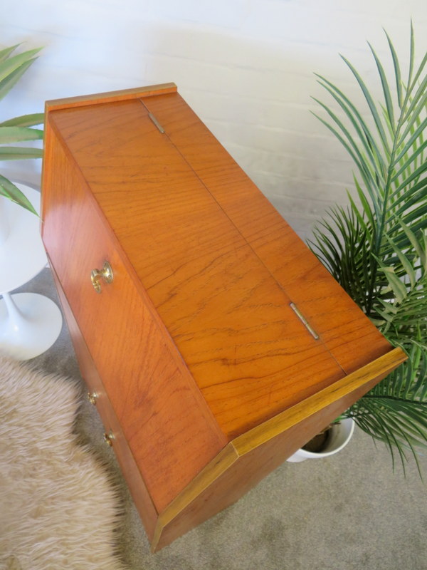 Cocktail Drinks Cabinet made by RIVINGTON of LONDON that would look great in a Vintage Home. The Cabinet features a VERY COOL illuminated top Cocktail section. Pull down the from flap and the top flap lifts and the interior light automatically turns on and reveals the original mirrors / the back one has BEAUTIFUL