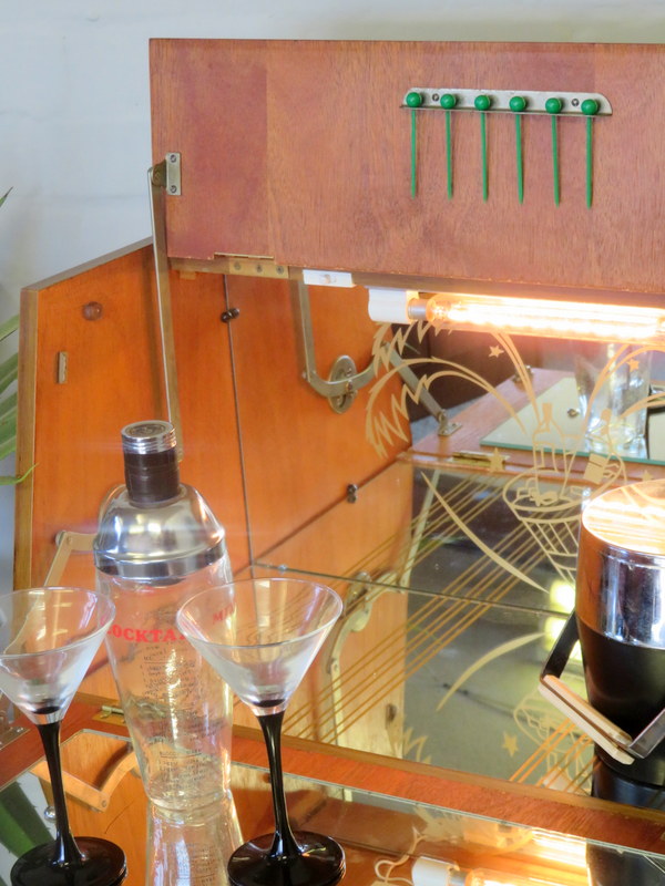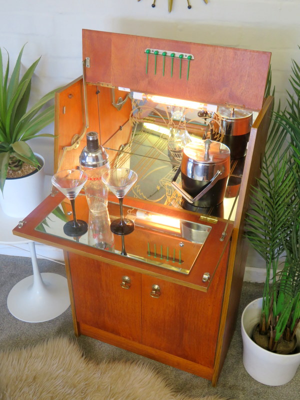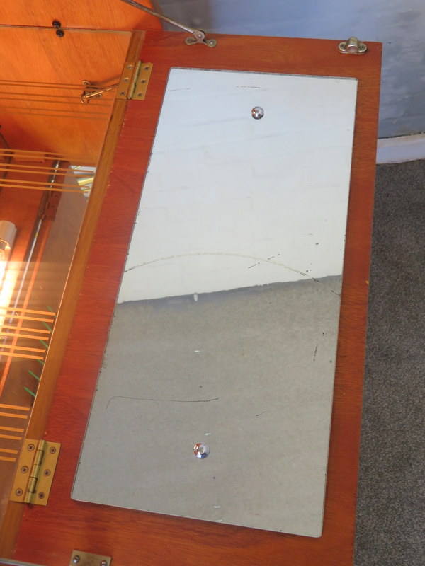 The Cabinet comes in VERY GOOD Vintage condition with marks and wear commensurate with age and use. Please see all the photos for the best description of the really lovely condition. There are no cracks to the original internal mirrors, some foxing commensurate with age & use. In the last image the Mirror looks like there is a cracks but there is NOT a crack its just a mark/line on the back of the Mirror. Any questions at all regarding the condition please feel free to ask and extra photos and info can be supplied. Viewing is also available request. Please note the items shown in the Cabinet are NOT included (the Set of x6 Cocktail Sticks ARE included in the sale).