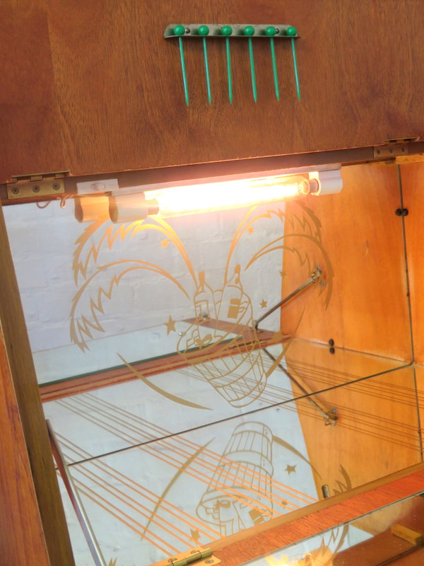 images see close ups in image 7 . The Cabinet comes with modern wiring & plug* Also inside this section are the x6 Original Cocktail Sticks.