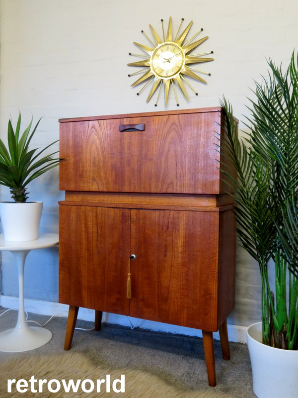 The Cabinet comes in overall VERY GOOD Vintage condition with marks, wear & some nicks to the veneer commensurate with age and use. Please see all photographs for the best description of the condition. Any questions at all regarding the condition please feel free to ask and extra photos and info can be supplied. Viewing is also available request. Please note the items shown in the Cabinet are NOT included (the x6 Cocktail Sticks & the Lemon Squeezer ARE included in the sale).