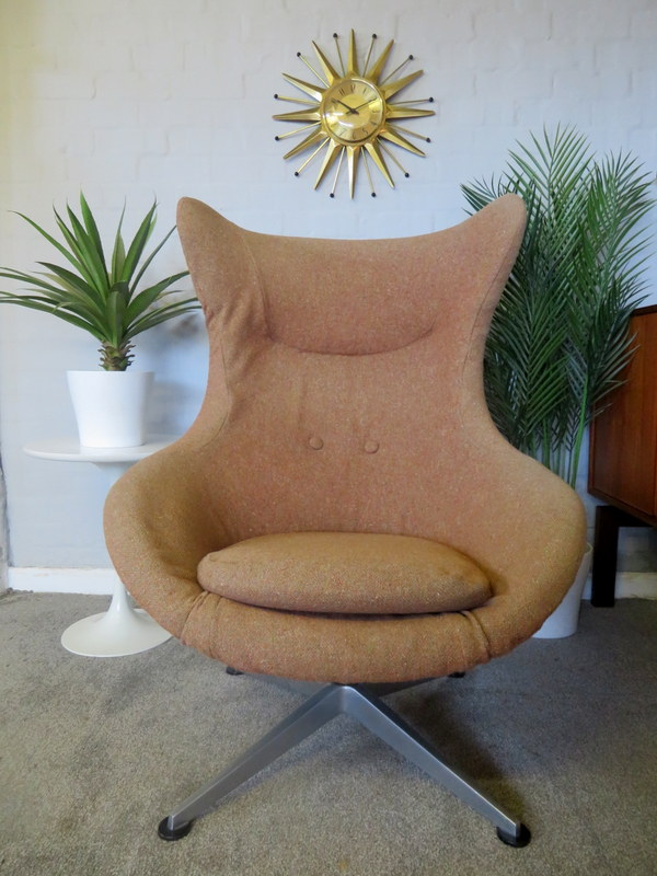 This is a great opportunity to own an ICONIC Vintage Swivel Armchair. Made by LURASHELL this REALLY lovely Vintage Armchair would look great in a Vintage / Mid Century environment. The fibreglass shell of the Chair is damage free and comes with the original upholstery, buttons intact and the swivel mechanism is fully working complete with all the little feet.