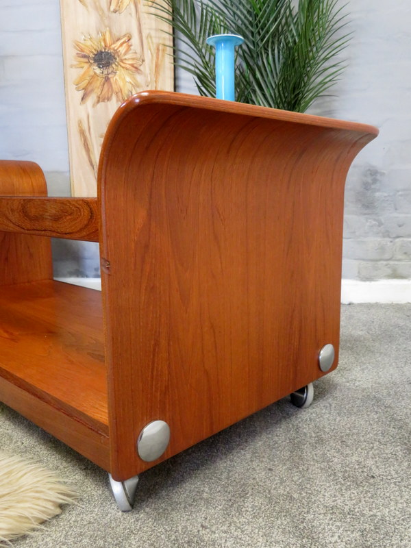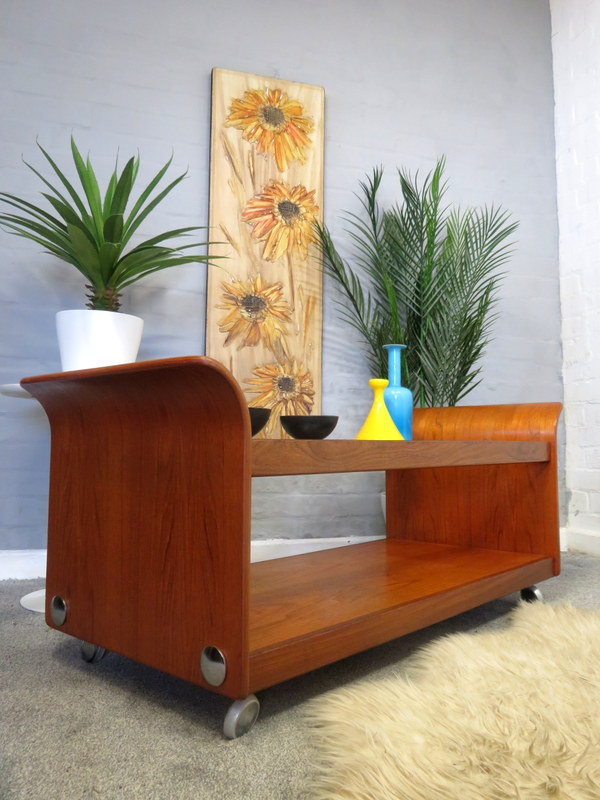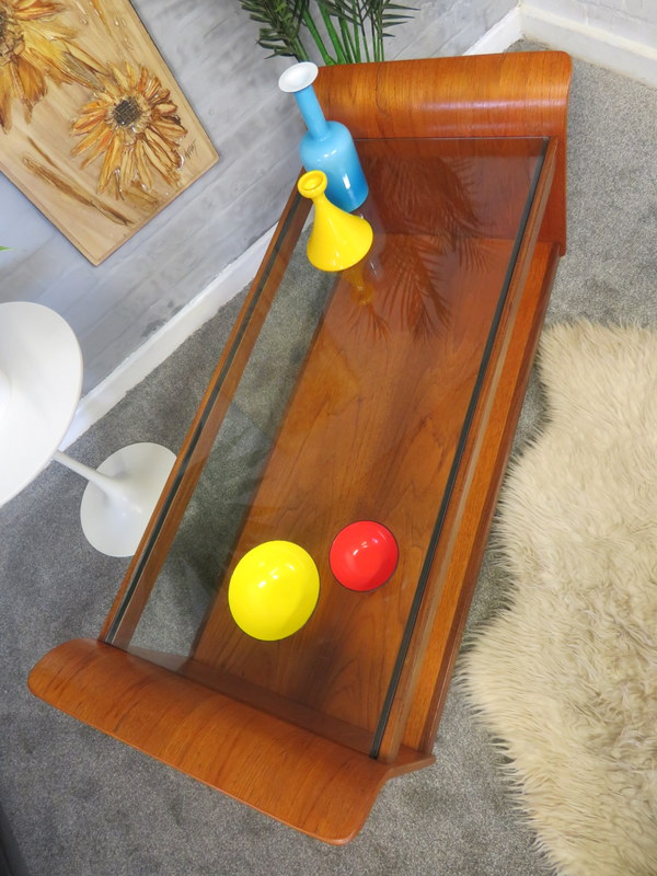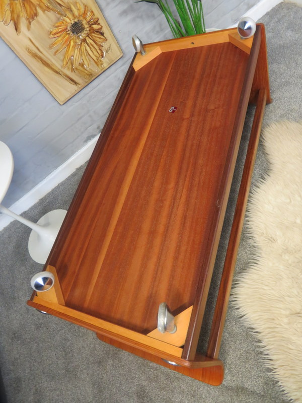 commensurate with age and being a Vintage piece. The frame comes complete with all x4 chrome circular caps. The Table comes with all the x4 original chrome castors. The frame comes in very good condition with light usage marks to the wood and x1 nick to an edge. Some light fading to the magazine rack underneath. Please see all the photographs to see the condition. Any questions at all regarding the condition please feel free to ask and extra photos and information can be supplied. Viewing is available upon request.